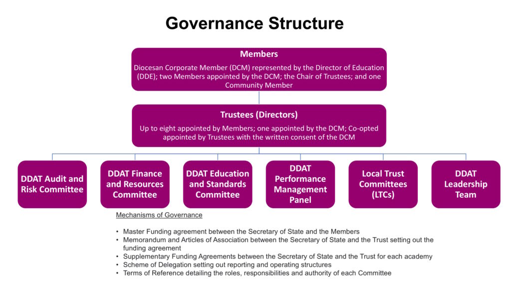 Local Trust Committee’s (LTC’s): work at local level to provide support, to monitor and to challenge educational experience and performance. They engage with key stakeholders, including the local community and the church, and support alignment with DDAT’s strategy, approach, ethos and values.